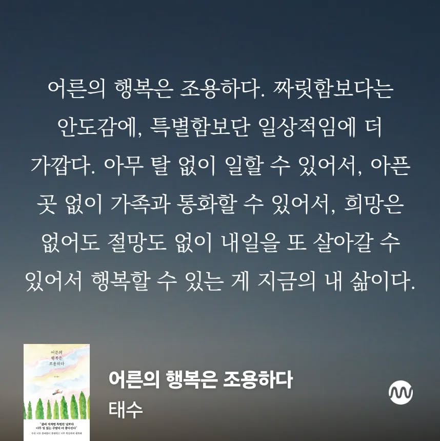 "태수 작가의 글은 마치 따뜻한 차 한 잔처럼 마음을 편안하게 해줍니다. 이 책을 통해 많은 이들이 조용한 행복을 찾길 바랍니다."