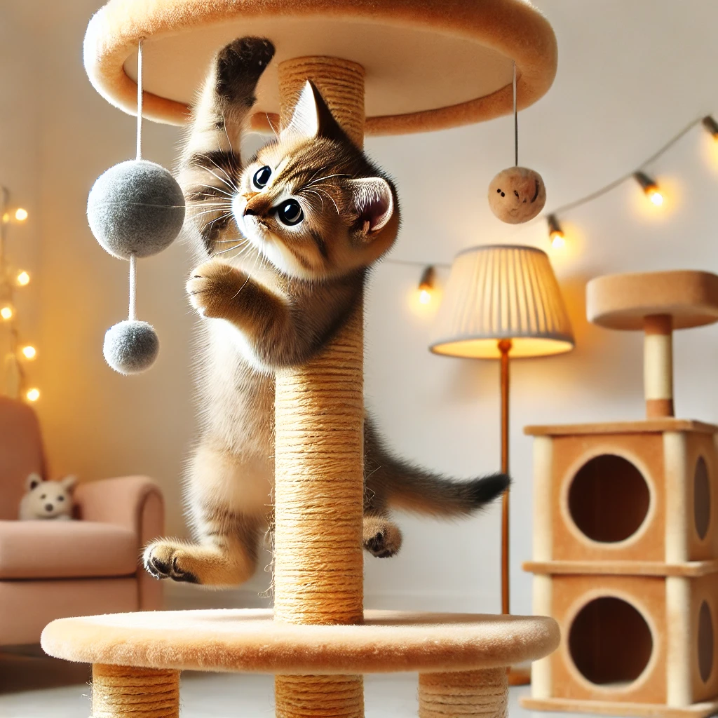 ✔ 캣타워 & 스크래처 활용 – 고양이는 높은 곳을 좋아해요.