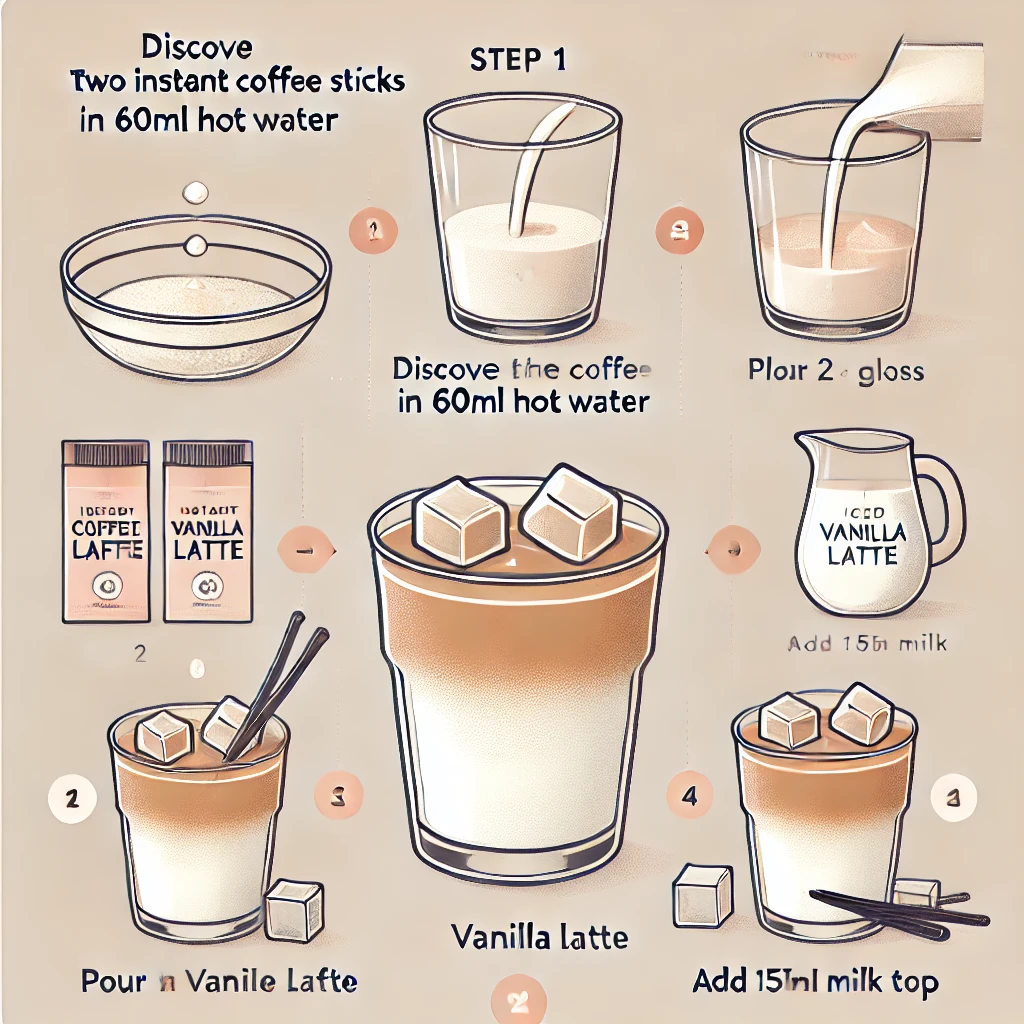 스틱커피와 바닐라 시럽만 있으면, 시원하고 향긋한 바닐라라떼를 집에서도 간편하게 만들 수 있답니다.