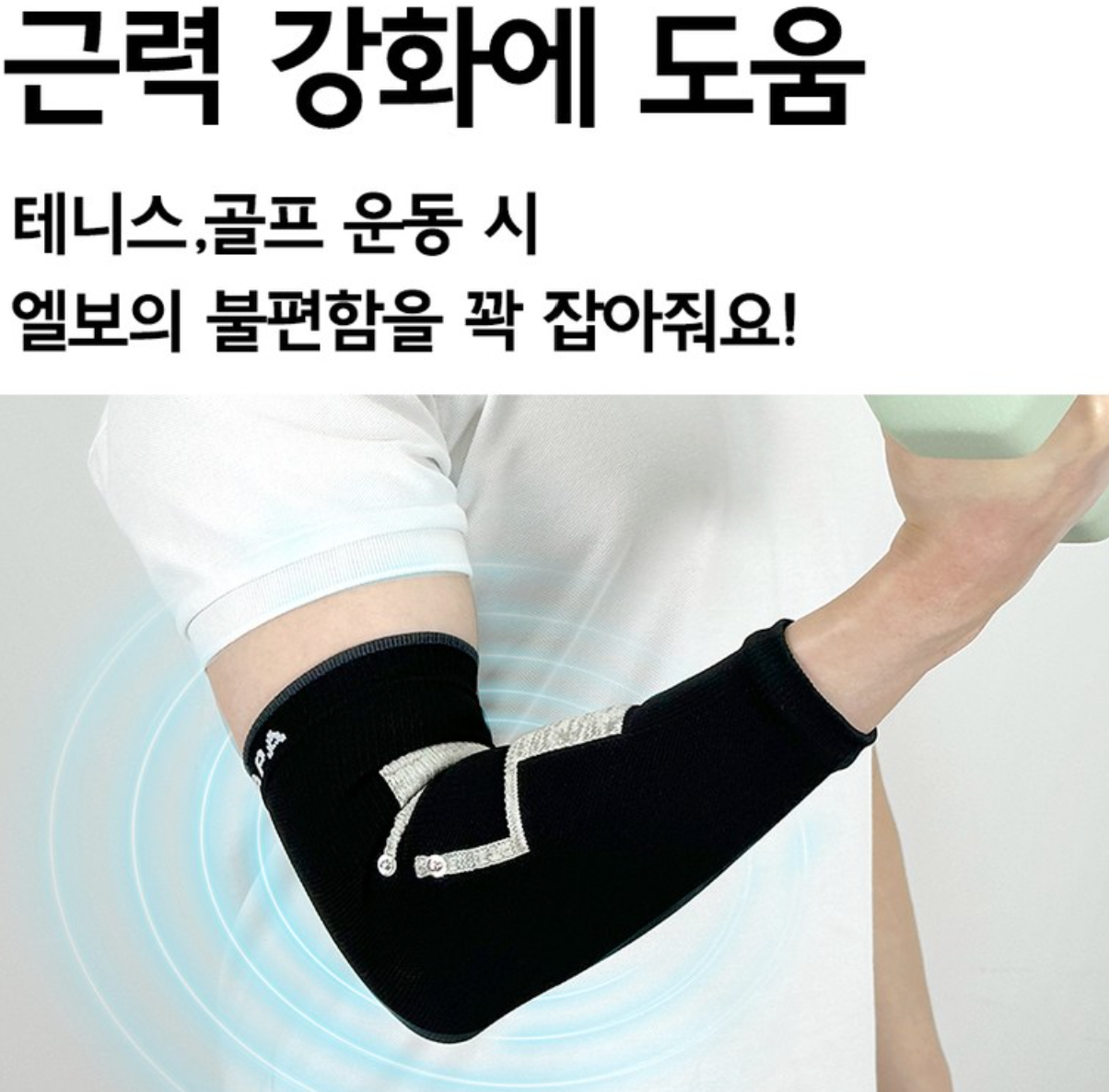 팔꿈치에 밀착되는 디자인으로 착용감이 우수하며, 얇고 가벼워 일상생활 중에도 부담 없이 사용할 수 있습니다.