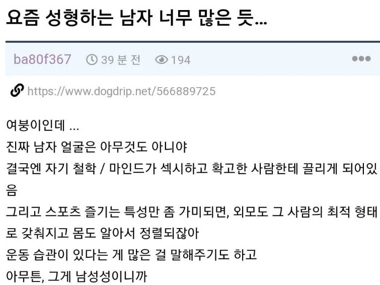 요즘 성형하는 남자 너무 많아서 걱정인 여자 본문
