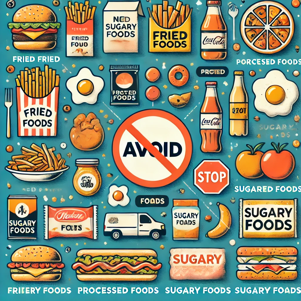 🚫 튀긴 음식, 가공식품, 단 음식, 짠 음식