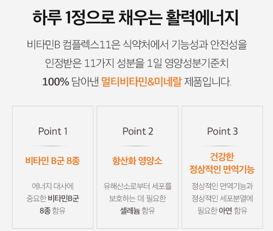 ✔️ 하루 한 알로 11종 비타민B군을 고함량 섭취