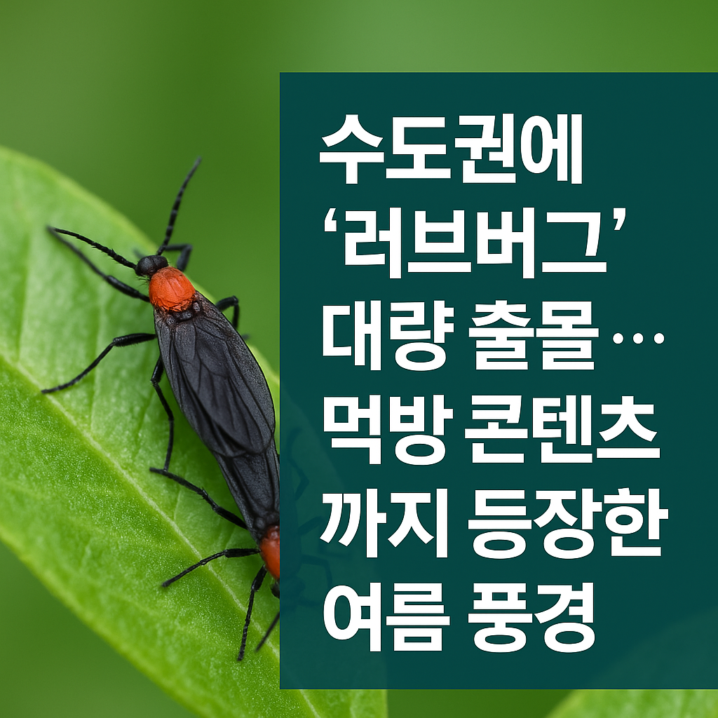 요즘 수도권을 중심으로 갑자기 눈에 띄게 많아진 검은 곤충 때문에 당황하신 분들 많으셨을 거예요. 바로 '러브버그(Lovebug)', 정식 명칭은 붉은등우단털파리라는 이름을 가진 곤충입니다. 이 곤충이 갑작스레 대량 출몰하면서 일상 곳곳에 불편을 주고 있는데요, 심지어 유튜브에서는 이를 요리해 먹는 '먹방' 콘텐츠까지 등장하면서 더 큰 화제가 되고 있어요.