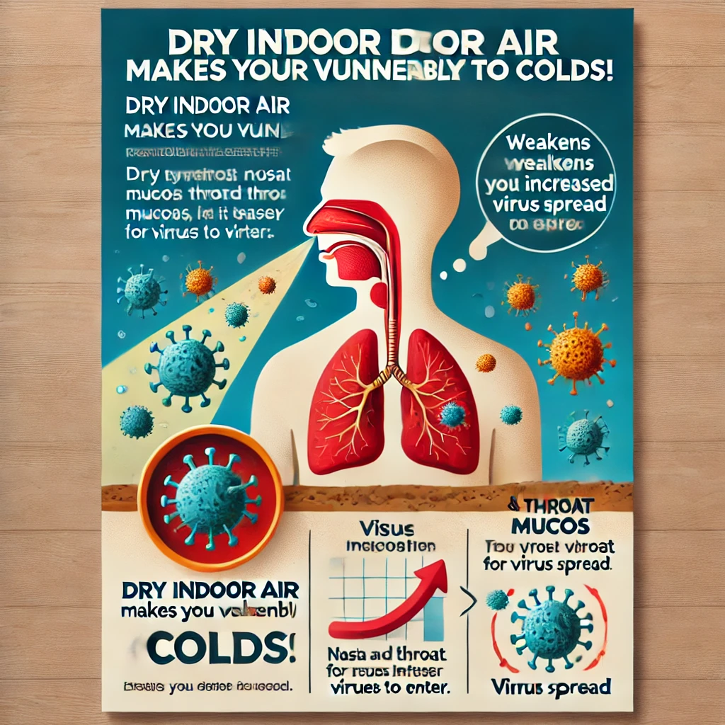✔️ 건조한 공기가 코와 목의 점막을 약하게 만들어 바이러스 침투 증가