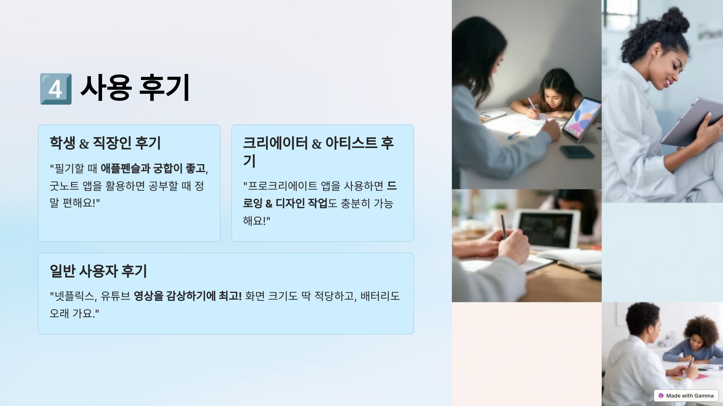 ✅ "필기할 때 애플펜슬과 궁합이 좋고, 굿노트 앱을 활용하면 공부할 때 정말 편해요!"