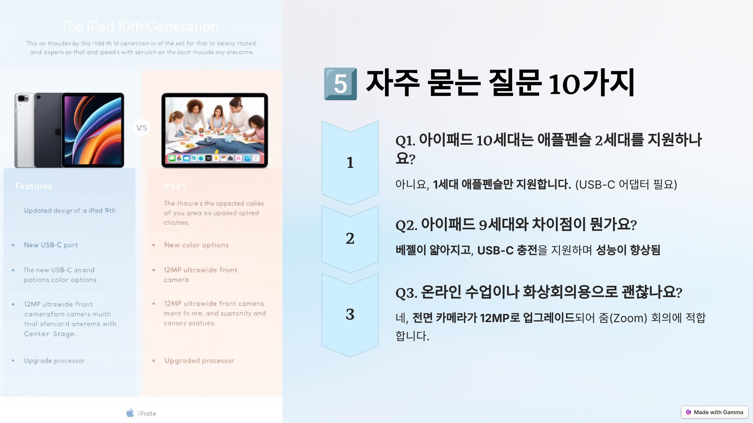 ❓ Q2. 아이패드 9세대와 차이점이 뭔가요?