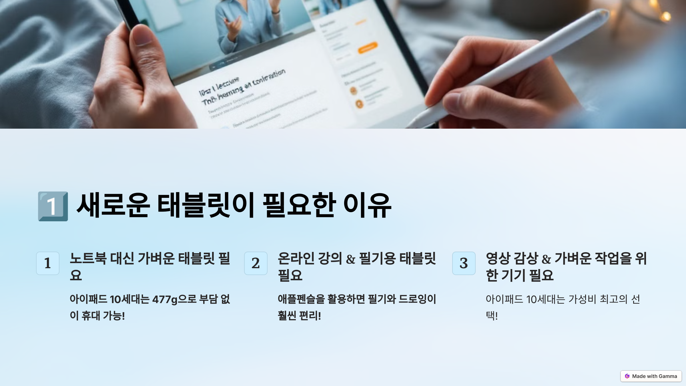 아이패드 10세대가 여러분의 작업과 생활을 더욱 편리하게 만들어 줄 것입니다! 😊