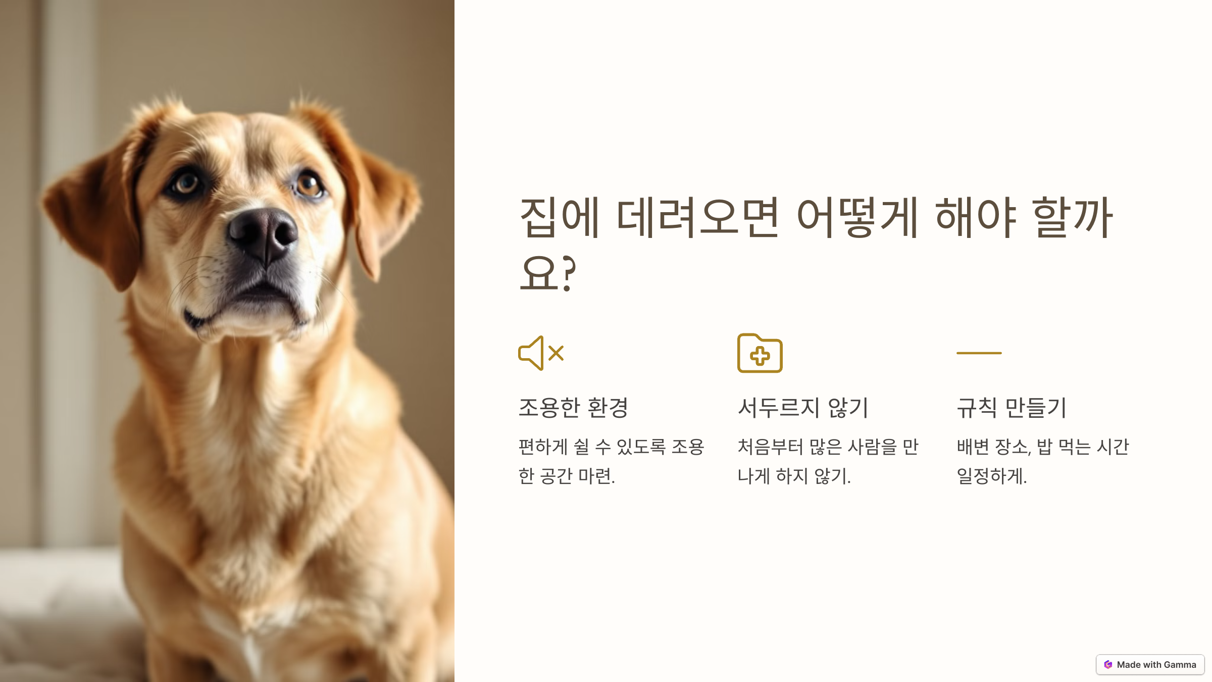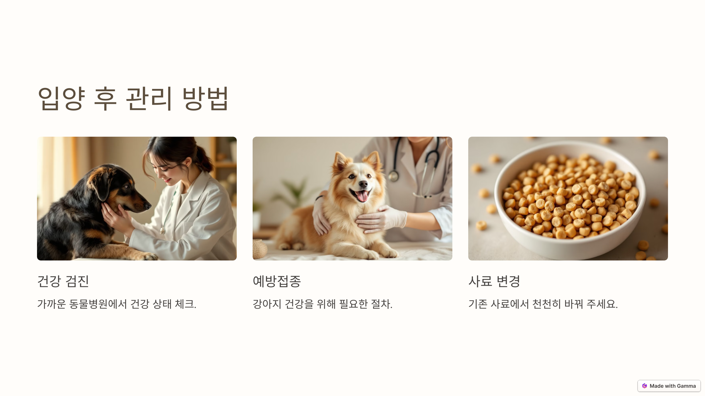 💡 강아지가 새로운 가족을 믿고 의지할 수 있도록, 따뜻한 환경을 만들어 주세요!