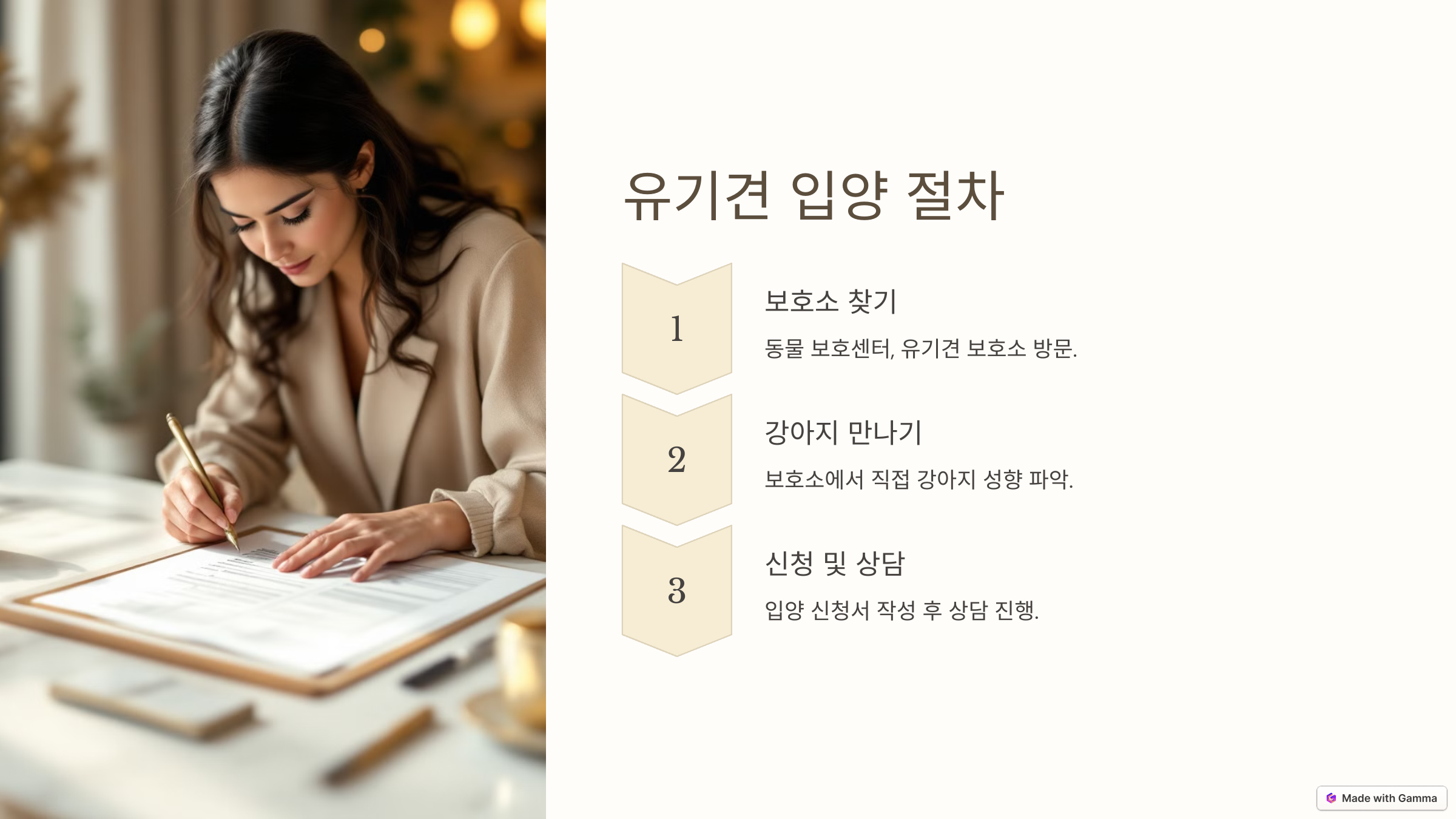 ✅ 3. 유기견 입양 절차는 어떻게 될까요?
