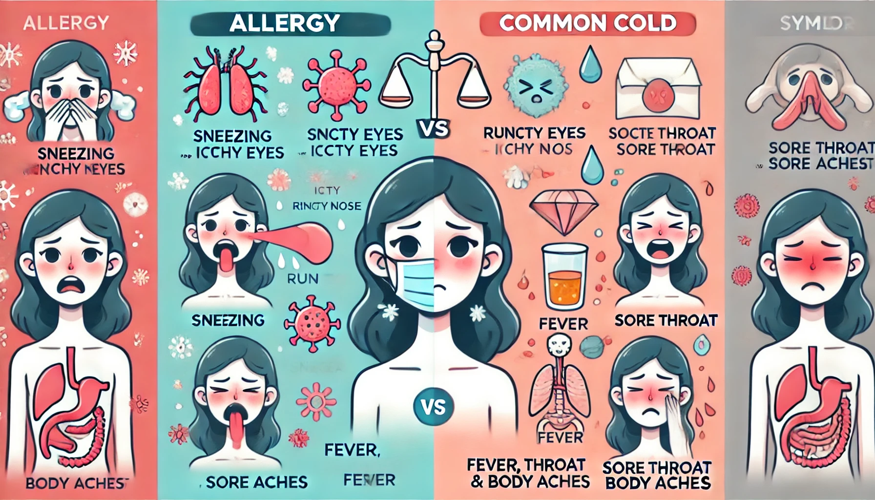 감기와 알레르기는 증상이 비슷하지만, 알레르기는 열이 없고 맑은 콧물이 오래 지속되는 것이 특징이에요.