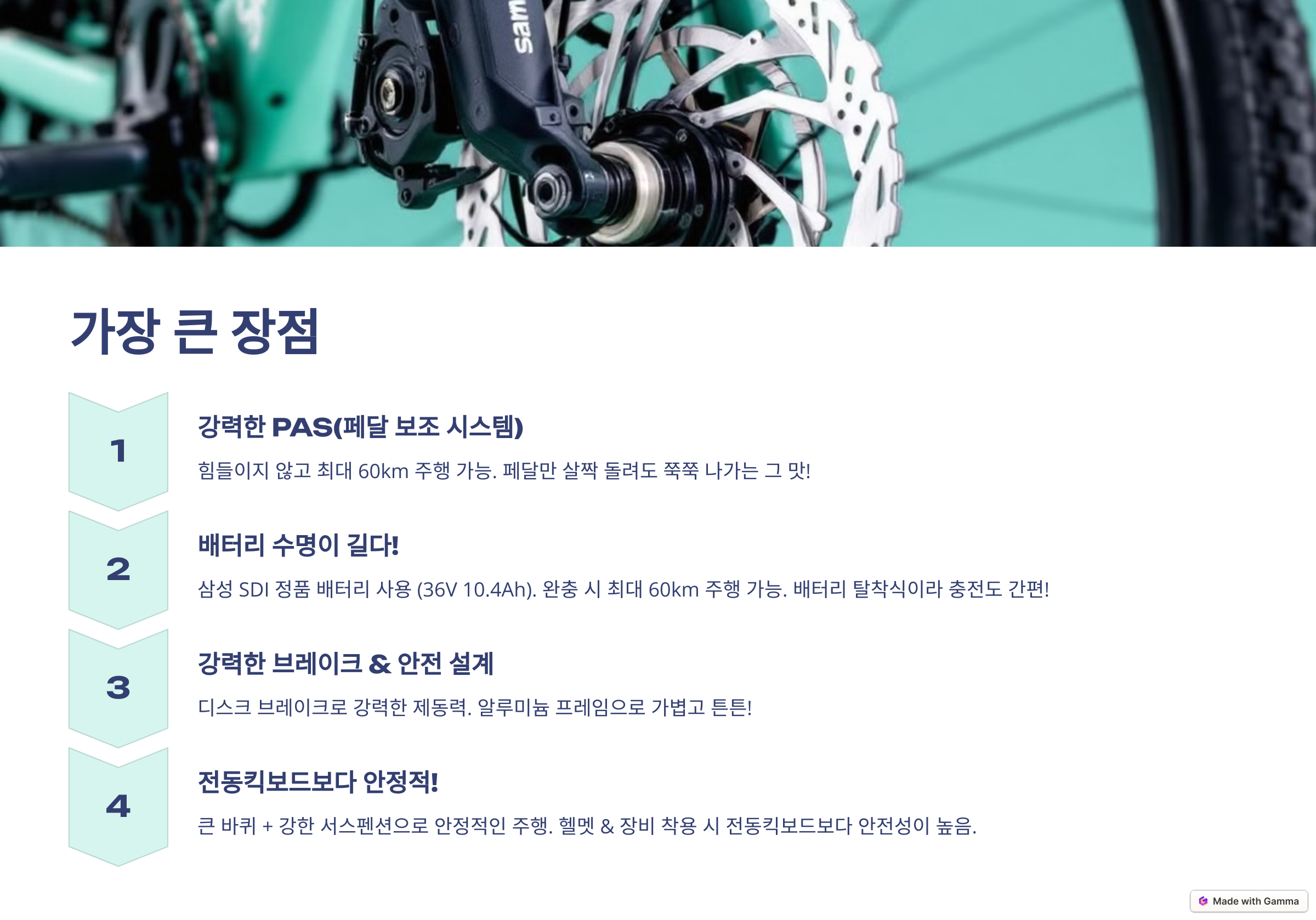 📌 즉, 출퇴근 + 장거리 라이딩 + 가성비 + 안전성까지 4박자 완벽한 전기자전거!