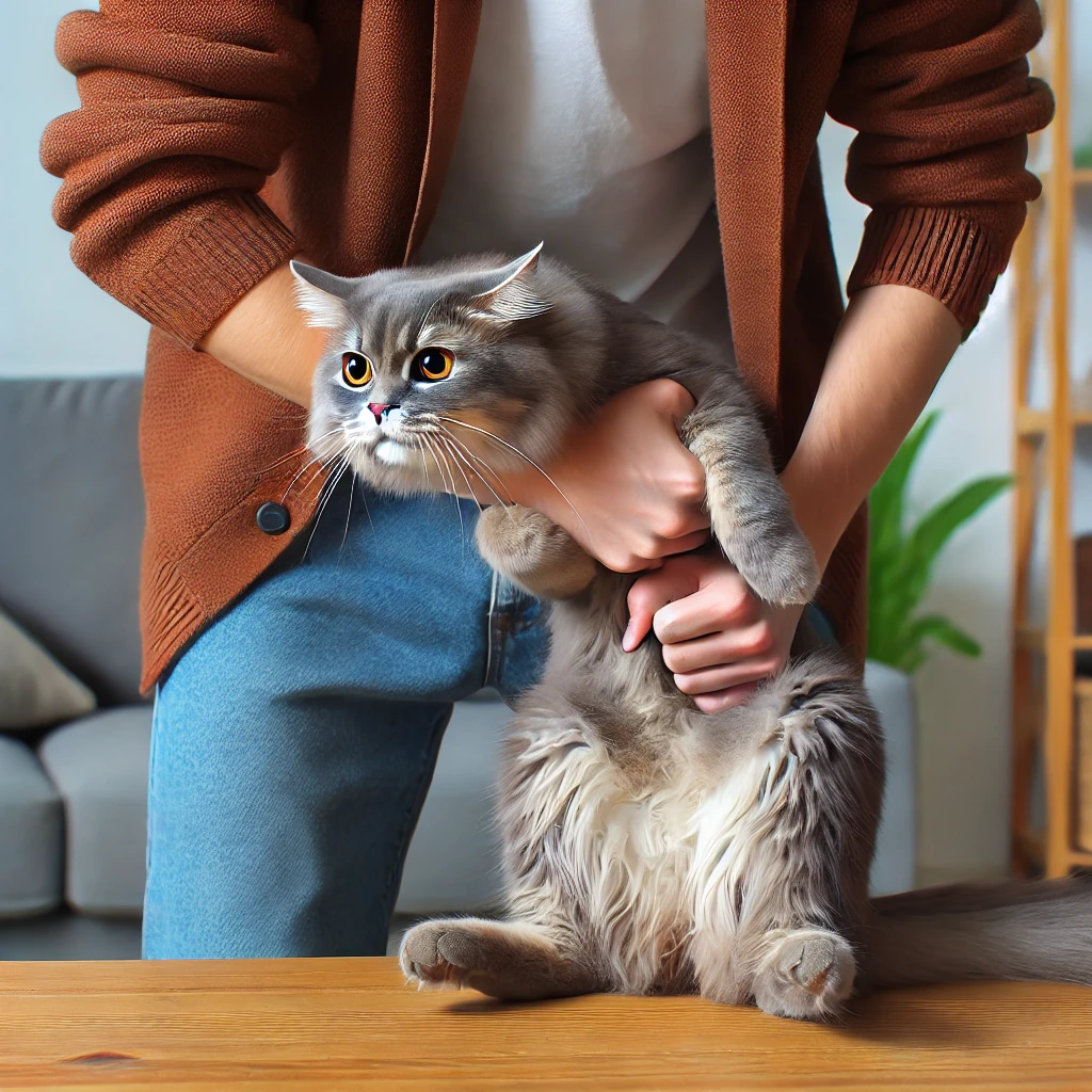 🚫 억지로 안거나 만지기 – 특히 고양이는 강제로 안기면 스트레스를 받아요.