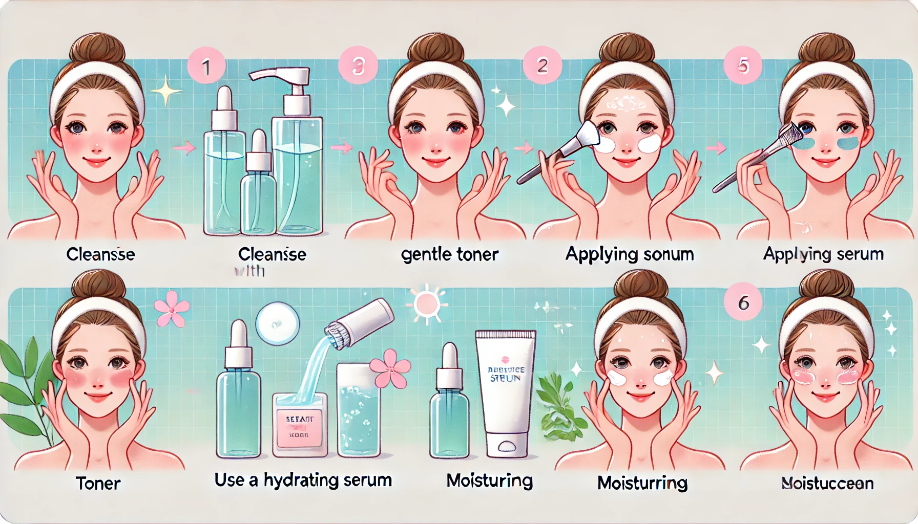 1️⃣ 세안 – 미지근한 물로 세안 후, 촉촉한 젤 타입 클렌저 사용