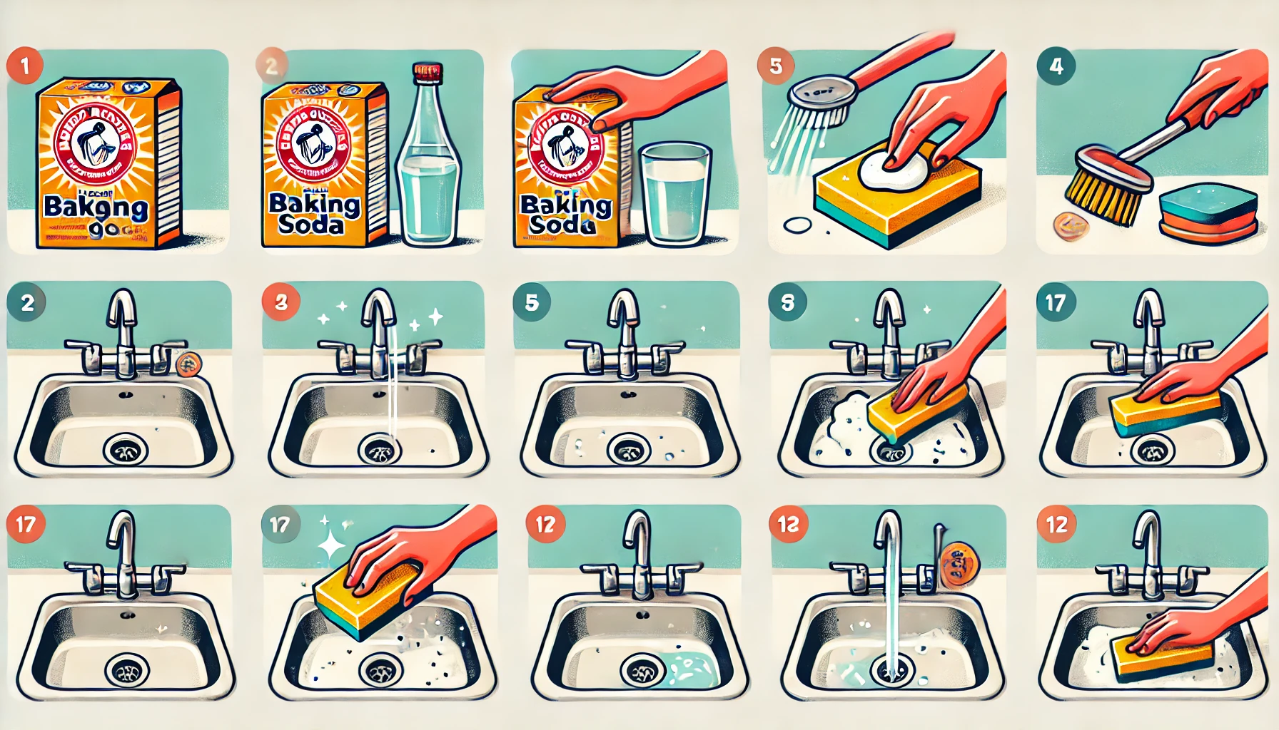 - 배수구에 베이킹소다 2~3스푼 넣기